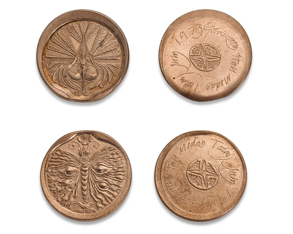The exhibition was the beginning not only of our thriving medal collection but of the Company’s continued involvement in promoting this contemporary artform; an achievement which was acknowledged by the award of the BAMS President’s Medal to the Company in 2022. That is another link to share with Malcolm as he receives this distinction in 2025. Looking back to Medals Today, for which he also made two souvenir pieces, [‘Human Butterfly’ and ‘Birds of Destiny’] he remembers it as “a great boost for medal artists...it was Graham Hughes’s vision of goldsmiths that propelled the art forward.”