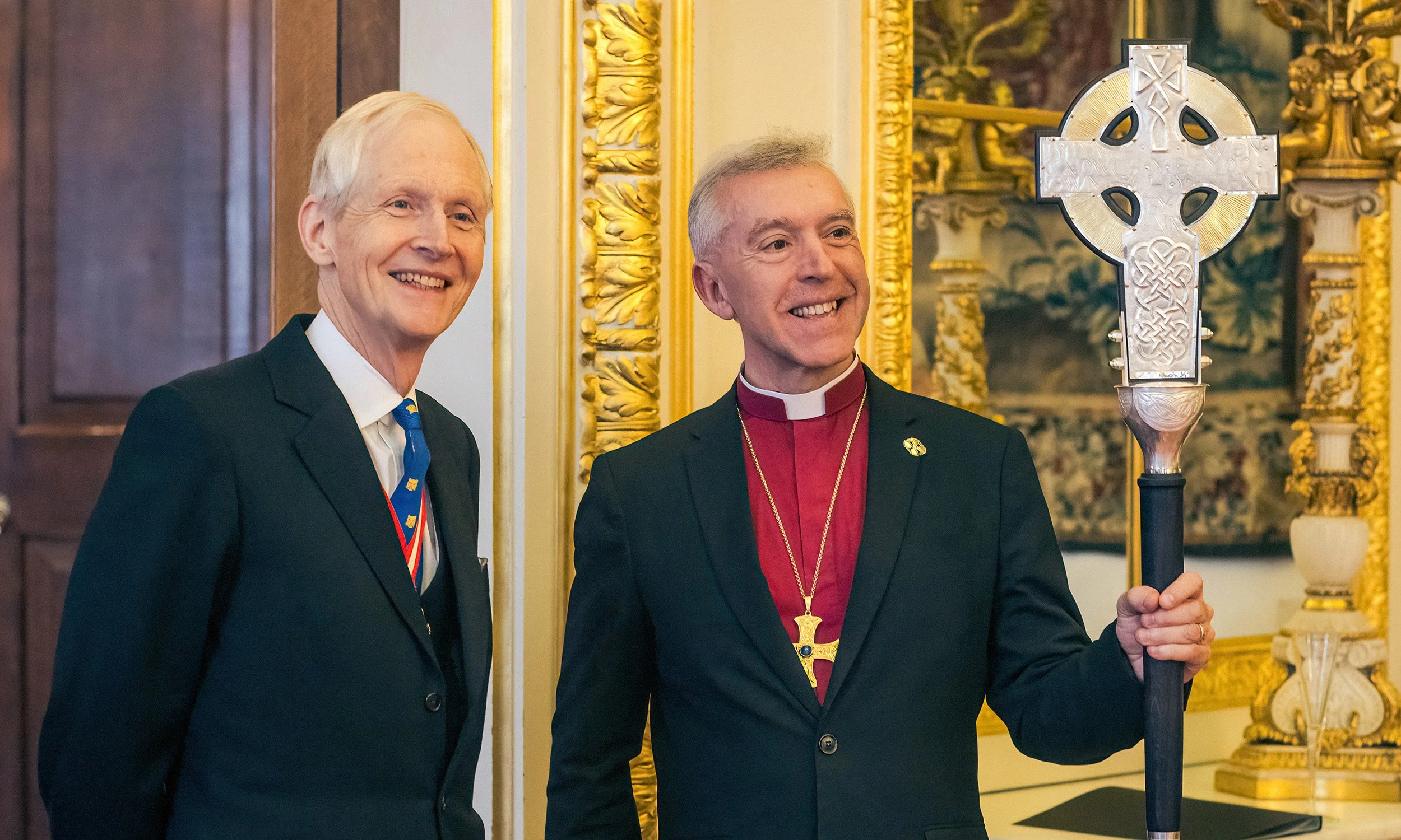 Thursday 25 January 2024 - Today, the Cross of Wales was presented to the Archbishop of Wales, Andrew John, by the Prime Warden of the Worshipful Company of Goldsmiths, Professor Charles Mackworth-Young, in a short ceremony at Goldsmiths’ Hall in the City of London.